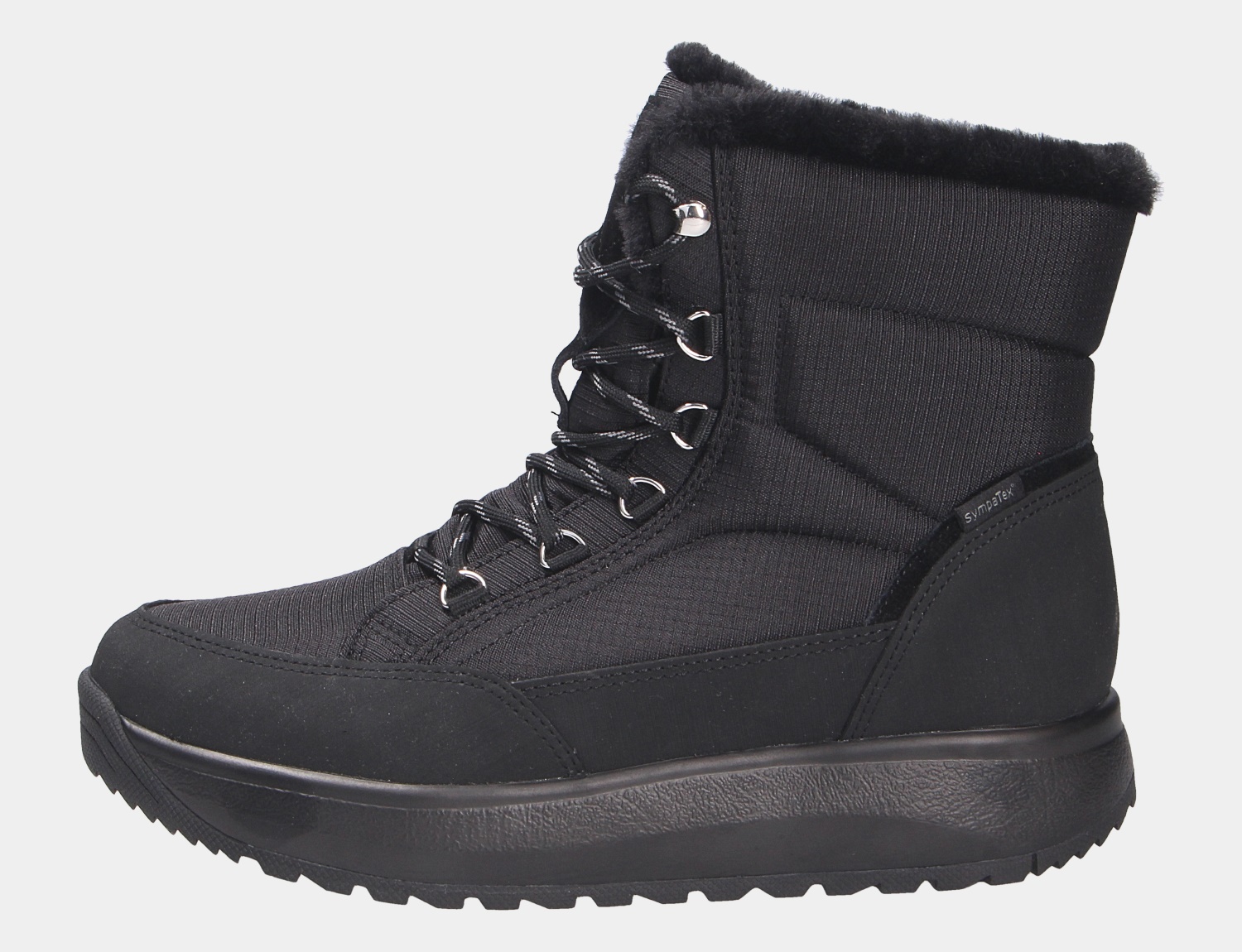 Robust, für Schnee und Regen geeignet ist der TIFFANY STX BLACK II aus dem Hause JOYA der ideale Begleiter für SIE. Das Obermaterial ist aus einem feinen hochwertigem Synthetikmaterial. Innen ist der Schuh mit einem weichen und atmungsactiven Synthetikmaterial ausgestattet. Die OrthoLite Support Einlegesohle ist sehr leicht und stark atmungsaktiv. Sie besteht aus einem PU-Schaum mit EVA-Verstärkung im Fersen- und Mittelfußbereich für zusätzliche Stabilität.Natürlich ist die Sohle herausnehm- und auswechselbar. Auf diesen Schuh freuen sich besonders etwas breitere Füße:Die Weite H bietet hier ausreichend Platz. Der Absatz ist durchgehend flach ,die Sohlenkategorie emotion steht für Freude am Stehen und Gehen.Die weich-elastische Joya Sohle dämpft jeden Stoß ab und unterstützt dadurch effektiv die Entlastung von Rücken und Gelenken. Das Ergebnis: ein einzigartiger Gehkomfort. Ideal für Menschen, die sich und ihre Füße mit einem einzigartig weichen Geh-Gefühl verwöhnen wollen.Die emotion-SENSO Technologie ist besonders weich im Fersen- und Vorfußbereich und bietet durch die starke Dämpfung eine optimale Entlastung.Besonders geeignet für Menschen mit sensiblem Rücken und täglich stark belasteten Füßen und Gelenken. Eine praktische Schnürung vollendet den klassischen Look und erleichtert Ihnen den Einstieg. Die medium Schaftweite passt sehr gut für alle normalweiten Waden. Durch die runde Schuhspitze wirkt der Schuh dezent am Fuß und bietet genügend Platz für die Fußzehen. Die Schuhgröße fällt regulär aus. Mit der SYMPATEX® Memnbrane haben Sie optimalen Komfort für jedes Wetter: wasserdicht, atmungsaktiv, winddicht.